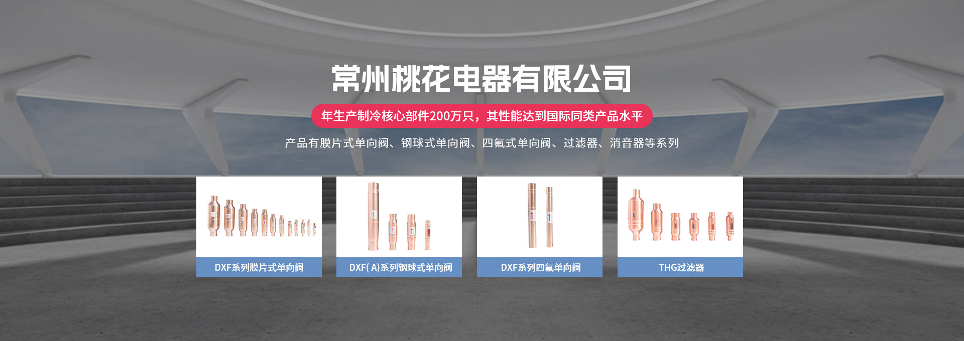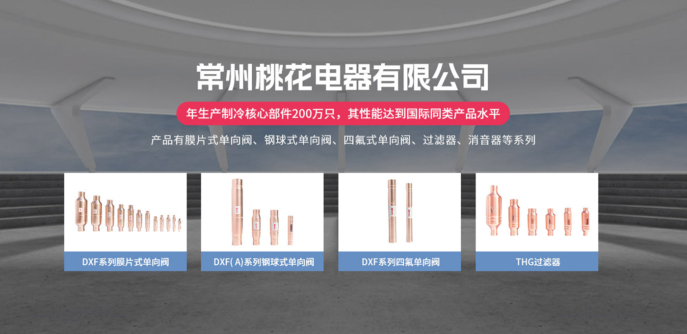 常州桃花電器有限公司地處中國長江“金三角”之稱的上海至南京高速公路、城際高鐵、常州高新經(jīng)濟(jì)技術(shù)開發(fā)區(qū)路段,交通便利、技術(shù)力量十分雄厚。它是集研究、開發(fā)設(shè)計(jì)、制造和經(jīng)營制冷核心部件的企業(yè),主要生產(chǎn)中央空調(diào)上使用的制冷部件。產(chǎn)品有膜片式單向閥、鋼球式單向閥、四氟式單向閥、過濾器、消音器等系列。年生產(chǎn)制冷核心部件200萬只,其性能達(dá)到國際同類產(chǎn)品水平。 企業(yè)擁有先進(jìn)的科學(xué)技術(shù)、國際先進(jìn)的生產(chǎn)加工設(shè)備和精密的檢測儀器,并已通過ISO9001質(zhì)量體系及CE認(rèn)證,公司歷史悠久,2000年起,經(jīng)過長期積累、沉淀,經(jīng)驗(yàn)豐富,從而保證了產(chǎn)品的高質(zhì)量、高性能、高耐用性。企業(yè)產(chǎn)品在國內(nèi)外市場具有較高的知名度,深受眾多中外品牌制冷客商的好評(píng)。主要客戶有約克、麥克維爾、美的、開利、特靈、頓漢布什、清華同方、天加等.并出口北美、歐洲、東南亞等地區(qū)。 高品質(zhì)產(chǎn)品是企業(yè)的保證,周到服務(wù)是合作友誼的承諾,企業(yè)本著“求